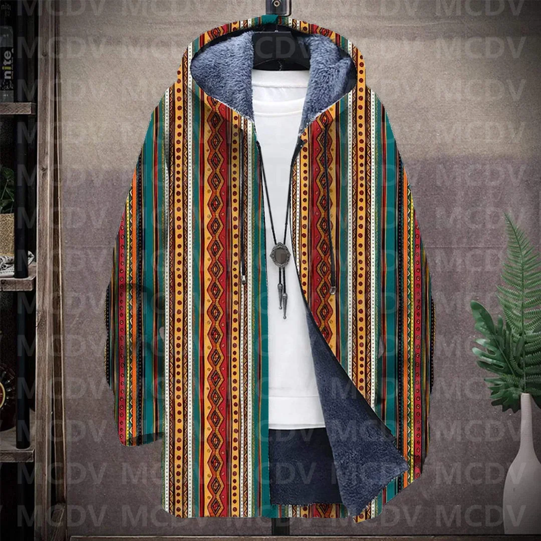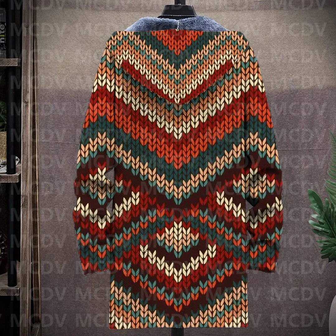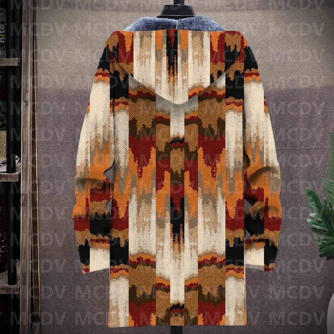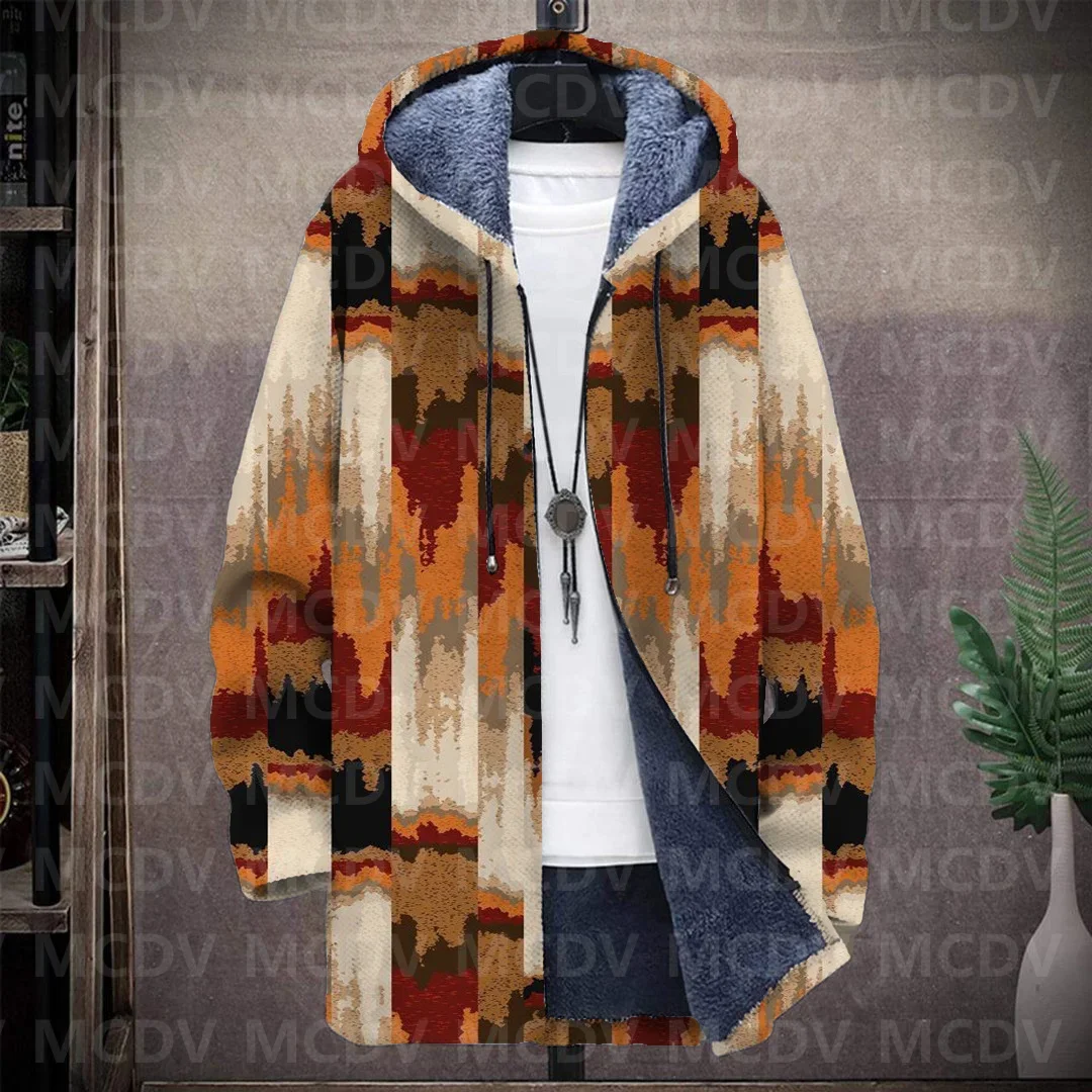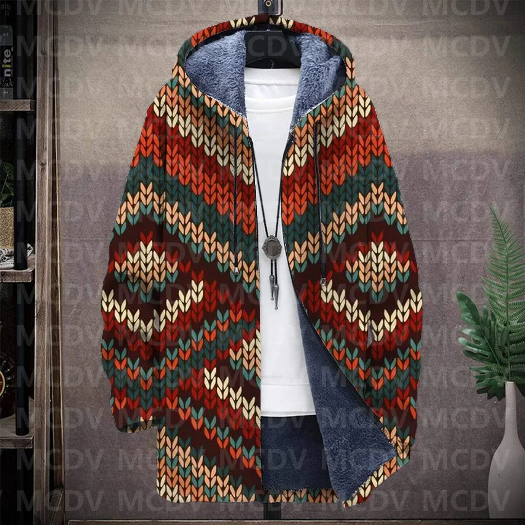 Natives Men's Retro Print Plush Thick Long-Sleeved Coat Cardigan