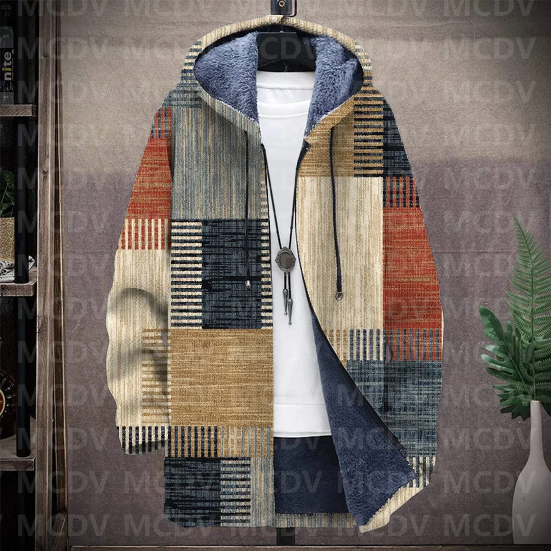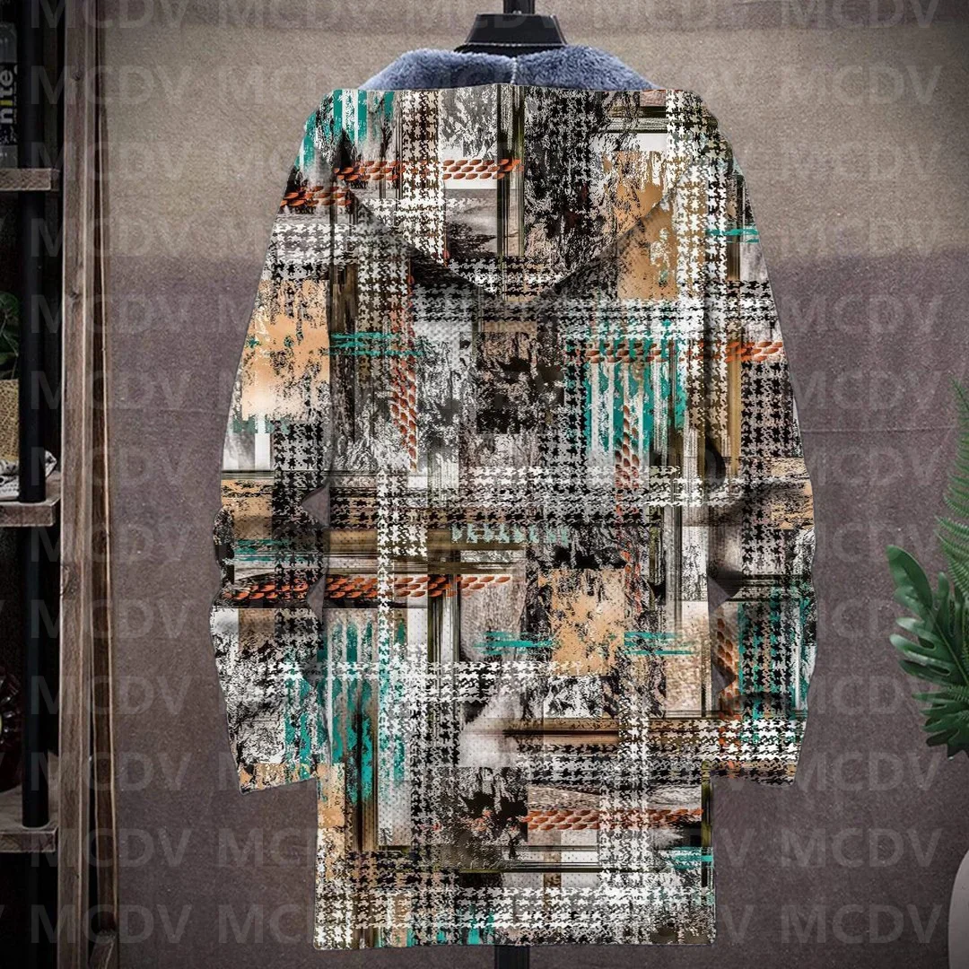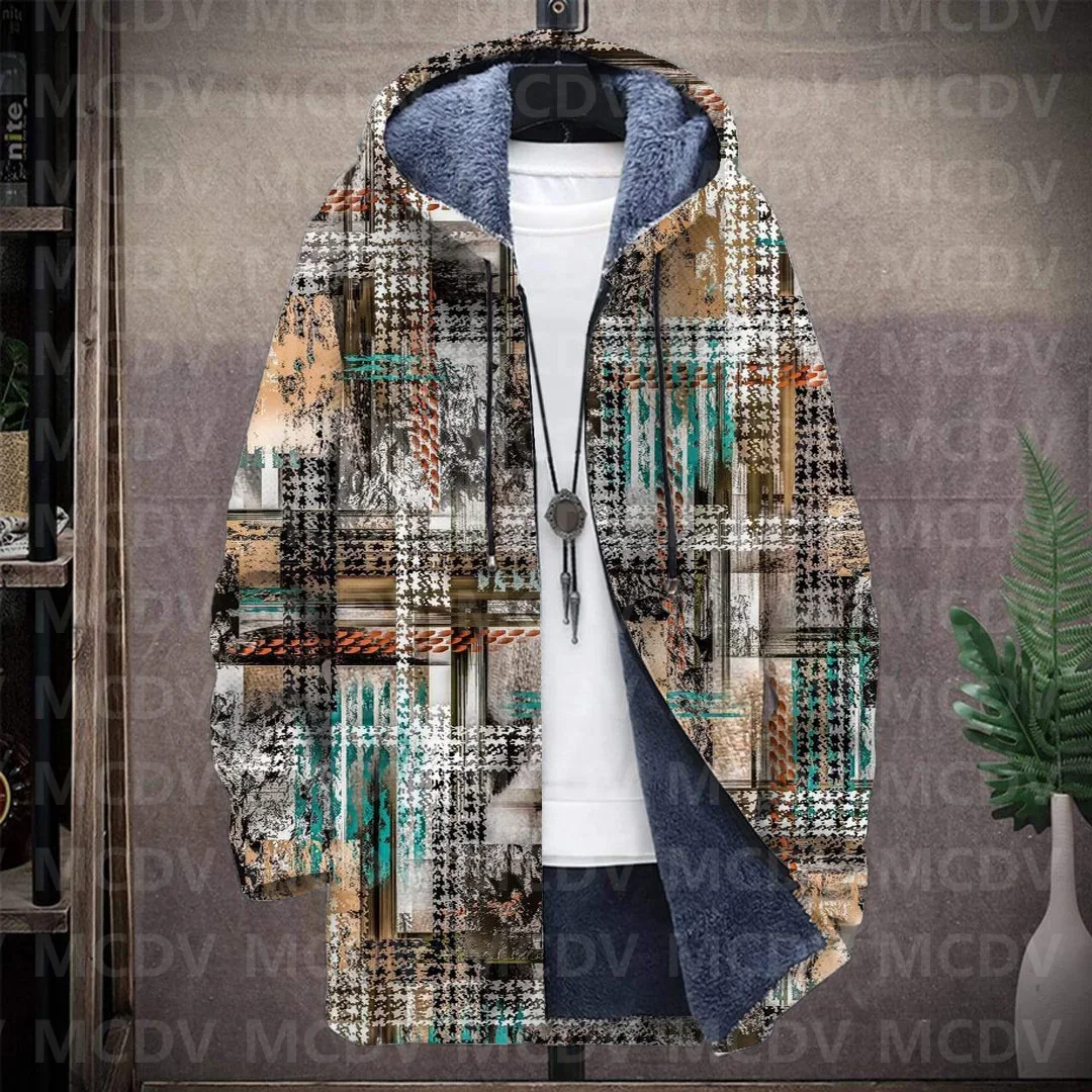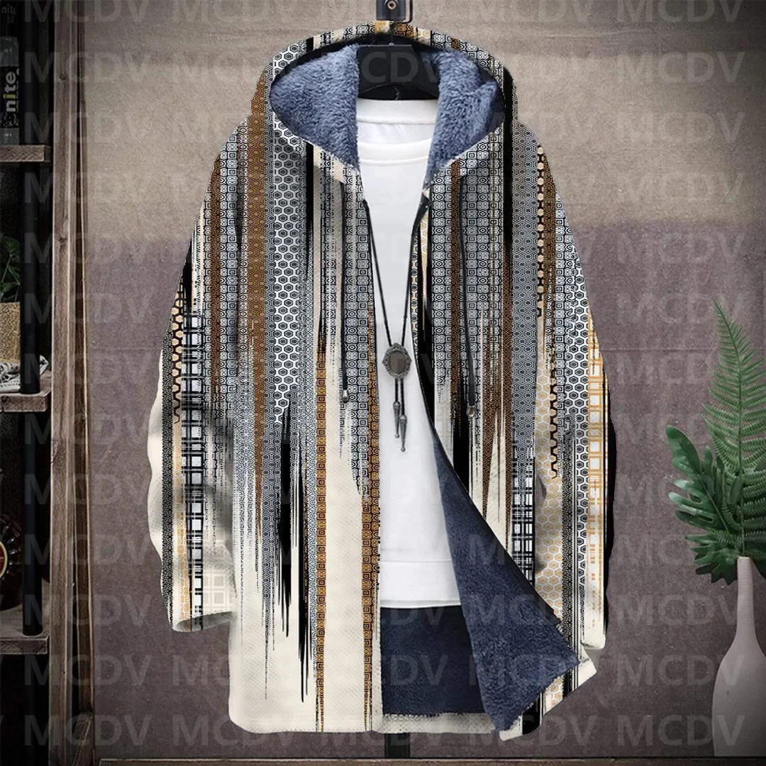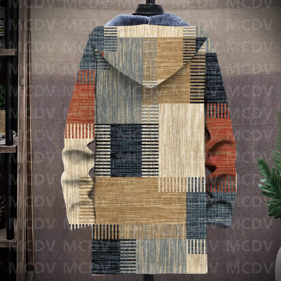 Natives Men's Retro Print Plush Thick Long-Sleeved Coat Cardigan